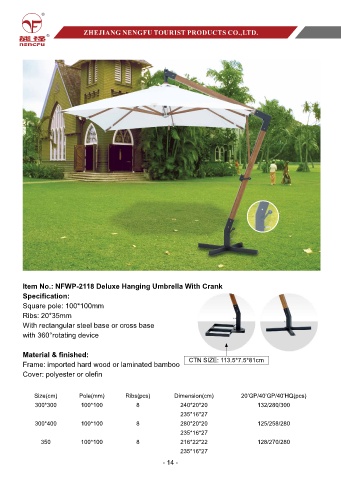 Item No.: NFWP-2118 Deluxe Hanging Umbrella With Crank
