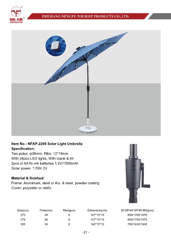 Size(cm) Pole(mm) Ribs(pcs) Dimension(cm) 20’GP/40’GP/40’HQ(pcs)