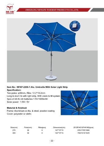 Item No.: NFAP-2208-1 Alu. Umbrella With Solar Light Strip