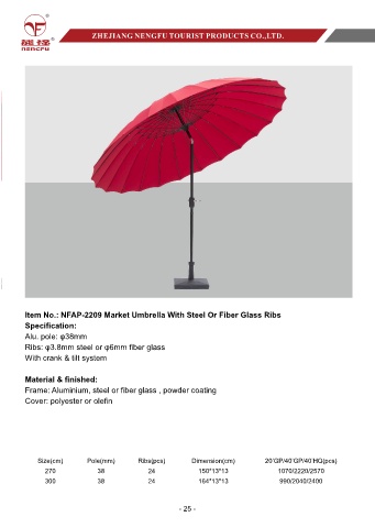 Item No.: NFAP-2209 Market Umbrella With Steel Or Fiber Glass Ribs