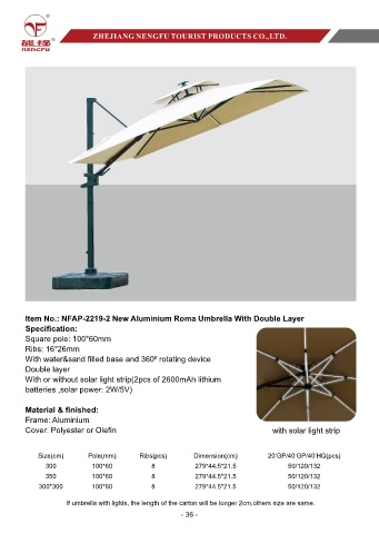 If umbrella with lights, the length of the carton will be longer 2cm,others size are same.