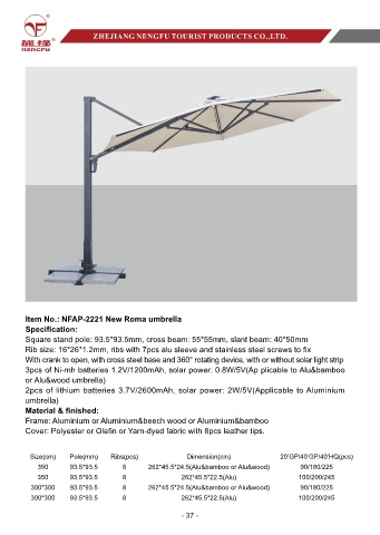 With crank to open, with cross steel base and 360° rotating device, with or without solar light strip