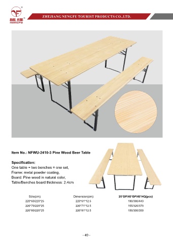 Item No.: NFWU-2410-3 Pine Wood Beer Table