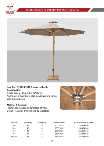 Size(cm) Pole(mm) Ribs(pcs) Dimension(cm) 20’GP/40’GP/40’HQ(pcs)