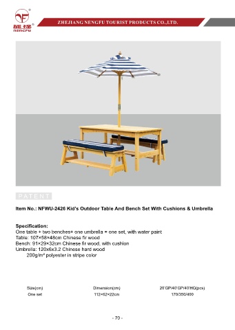 Item No.: NFWU-2426 Kid's Outdoor Table And Bench Set With Cushions & Umbrella