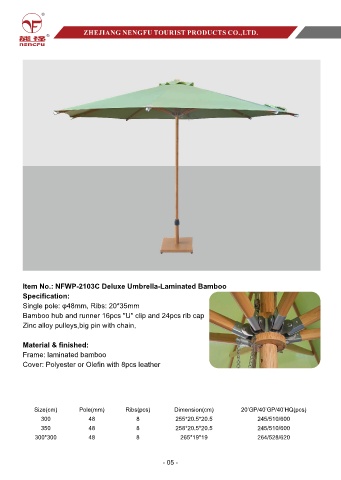 Item No.: NFWP-2103C Deluxe Umbrella-Laminated Bamboo
